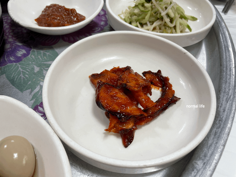 국물이 자박자박한 익숙하지만 처음 맛보는 로타리식당의 제육볶음이다. 2인분인데도 고기의 양이 넉넉했으며 고등어조림과 제육볶음 그 중간쯤 있는 매력있는 제육볶음이다.
