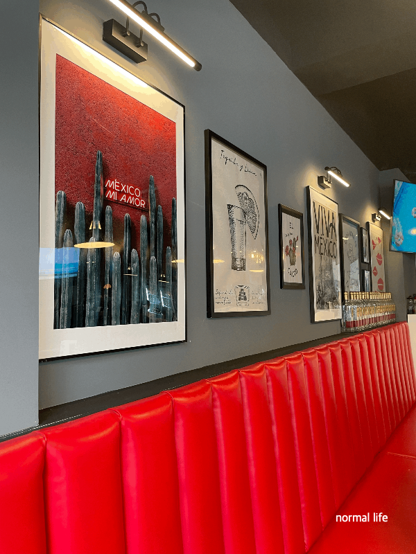 5년 만에 리코타코를 재방문하였는데 매장내부를 리모델링하여 조금 더 깔끔해진 분위기와 선인장과 소품 그리고 강렬한 레드 인테리어로 이국적인 분위기가 가득했다. 오픈주방으로 여러명의 전문 셰프들이 음식을 만드는 모습을 볼 수 있었고 단체모임도 가능한 넓은 테이블이 있었다. 평일 점심시간에 방문하여 점심을 즐기기 위한 근처 대학생들과 외국인들로 가득하여 리코타코의 인기를 체감할 수 있었다.