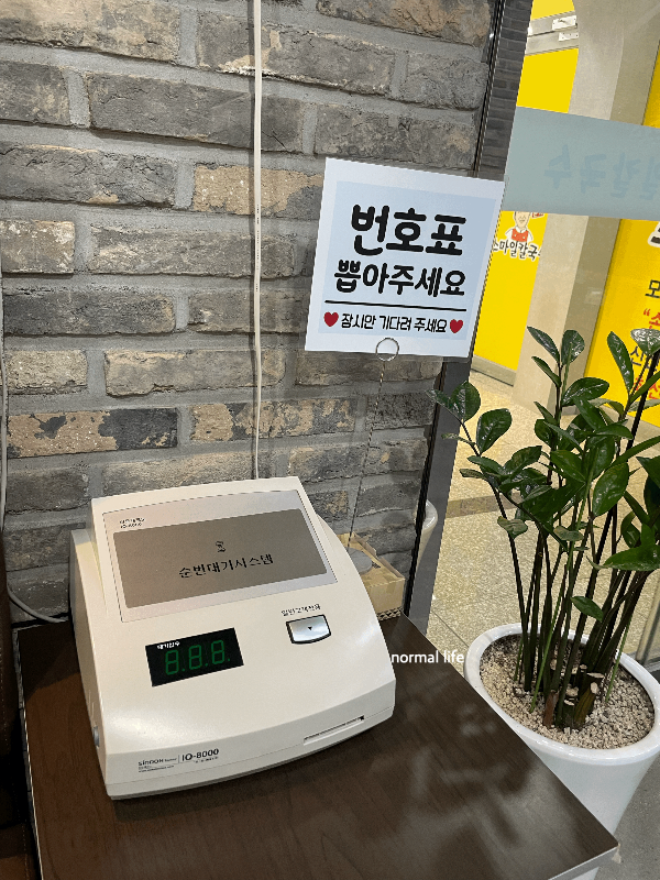 평일 식시시간에는 웨이팅이 있지만 토요일 식사시간이 지난 오후 3시쯤 방문하였더니 웨이팅 없이 바로 식사를 할 수 있었다. 점심시간에 스마일칼국수 선사점을 방문하였다면 바로 순번대기표부터 뽑아야 한다. 근처 대전정부청사 직원들과 스마일칼국수를 맛보기 위한 손님들로 가득하기 때문이다.