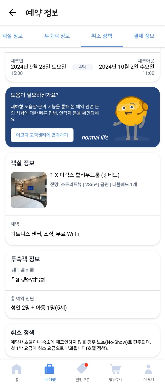 2024년 9월 29일 타이베이 새벽 1시 10분 도착 일정이어서 9월 28일부터 예약을 하여 4박 5일 동안 저스트슬립 산충을 예약하였다. 타오위안공항 도착 후 수속을 마치니 새벽 2시가 넘을 것 같아 공항 근처에 숙소를 잡을까 고민하다 아이의 컨디션을 위해 체크인 후 아침 늦게까지 푹 쉬는 게 더 좋을 것 같아 4박 5일 모두 저스트슬립 산충에서 지내게 되었다. 어른 2명, 5세 아이 1명, 조식 포함 타이완달러 11,722 한화 493,379원으로 가성비와 가심비를 모두 잡은 아주 만족스러운 호텔이었다. 참고로 아고다 예약이라며 보증금은 없었다.