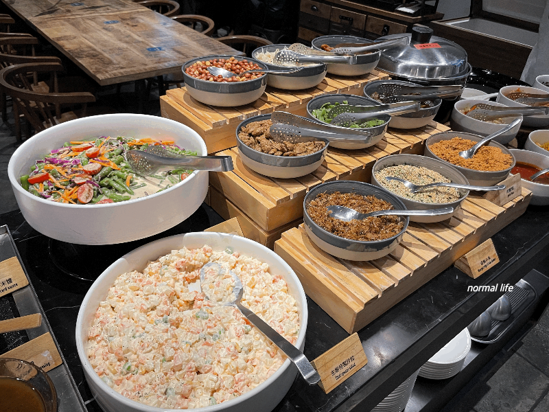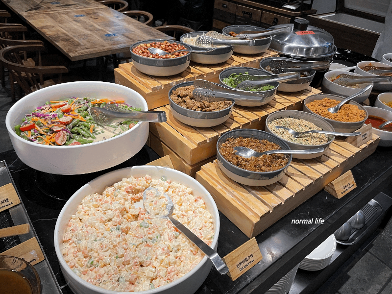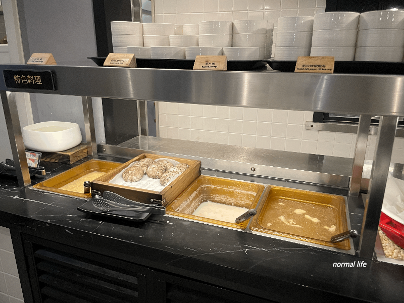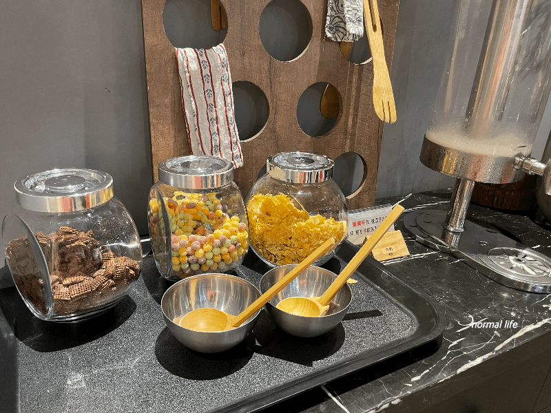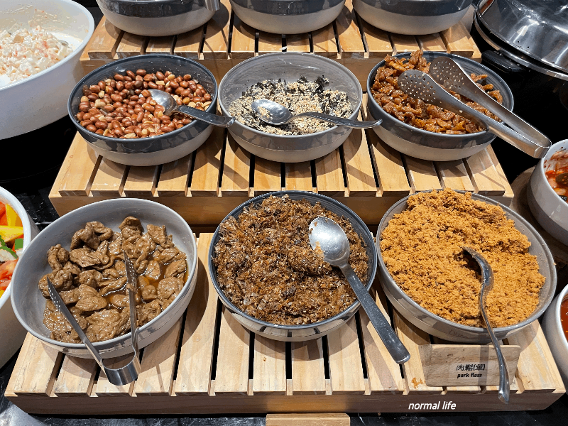 콘샐러드와 참깨소스 강낭콩샐러드, 오트밀죽과 함께 맛볼 수 있는 대만식 토핑과 반찬도 준비되어 있었다.