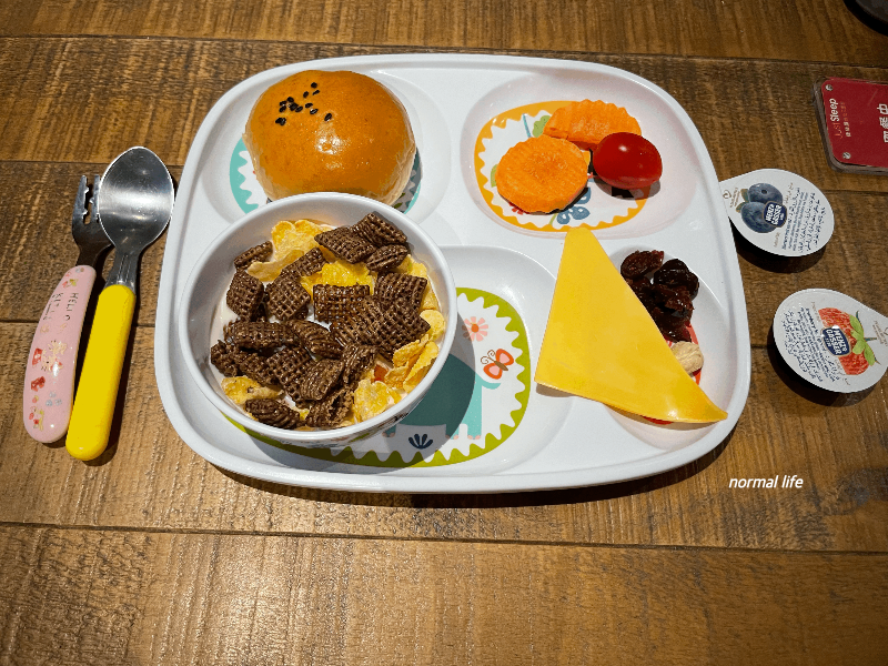 우리집 꼬마친구의 2일차 조식. 저스트호텔 조식공간이 맘에 들었던지 혼자 척척 어린이 식판과 숟가락, 포크도 챙기고 세자기 섞은 시리얼과, 당근, 모닝빵, 치즈, 견과류로 조식을 시작하였다. 이후에도 미소된장국에 밥도 말아먹었다. 밥만 잘 먹어줘도 행복한 엄마마음이다.