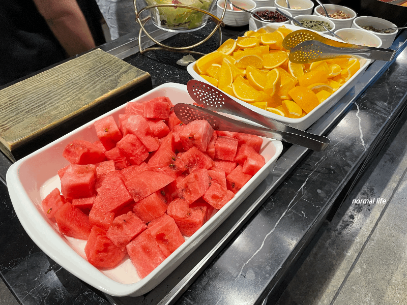 조식 후 후식으로 아삭아삭 달달한 대만 수박과 오렌지가 준비되어 있었다.