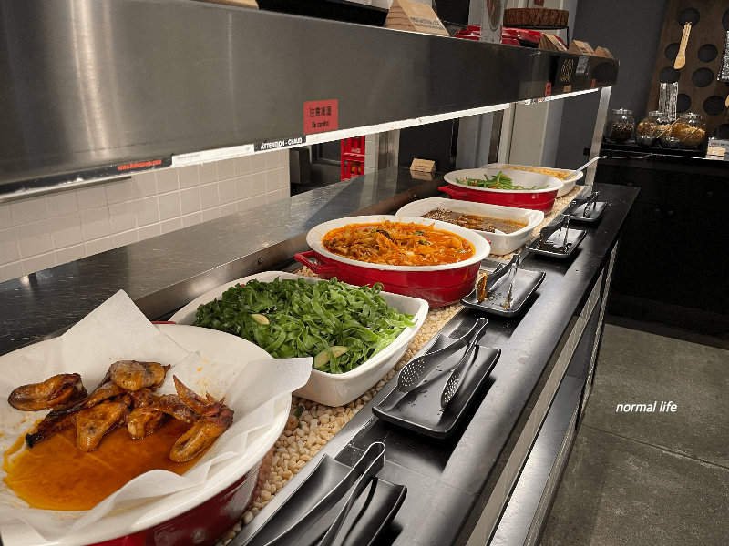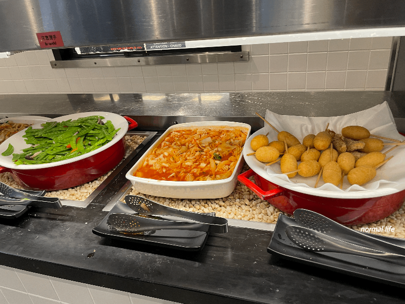 한식 비빔밥 재료들이 준비되어 있었다. 냄비밥과 지단, 콩나물 무침, 김치, 미역, 고추장, 그리고 사진을 찍지는 못했지만 미역국도 있었다. 대만을 여행 오는 한국인들의 비중이 많다 보니 매일 다른 한식종류들이 준비되어 있었다.
