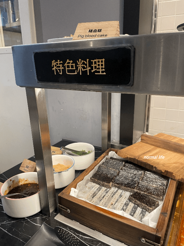 저스트슬립 산충 3일차 조식. 오늘도 메인메뉴들이 달라진 조식 메뉴 구경하는 재미가 쏠쏠하다. 대만의 무떡과 비슷한 모양의 떡으로 맛이 우리나라 순대맛과 비슷한 돼지 선지가 들어간 떡이다.