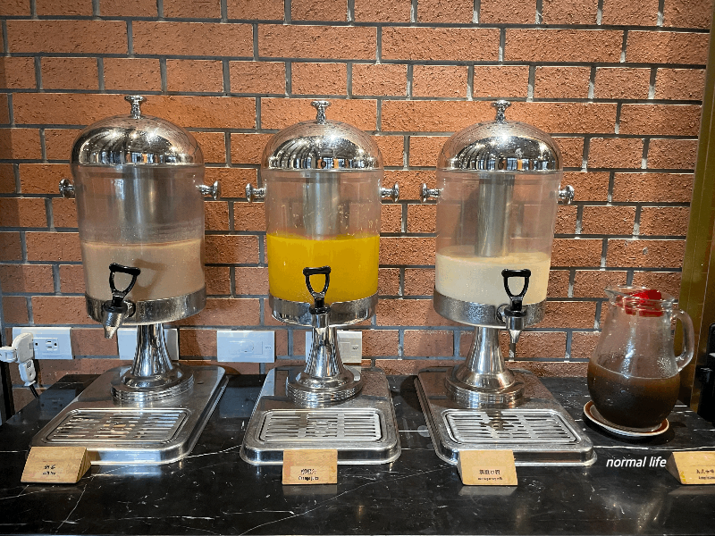음료 디스펜서에는 밀크티, 오렌지주스, 설탕이 첨가되지 않은 두유, 시원한 아메리카노를 취향껏 선택하여 맛볼 수 있었다.