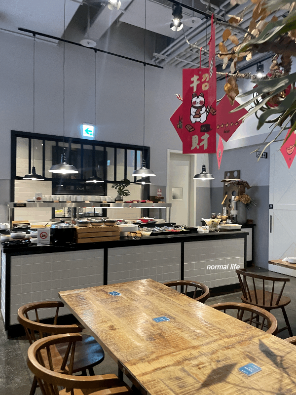 1층 로비는 오전에는 조식을 즐기는 공간, 오후에는 투숙객들이 스낵과 커피, 티를 마시며 쉴 수 있는 다목적 공간으로 사용되고 있다. 2019년 오픈한 저스트슬립 산충은 호텔 공간들이 깨끗하게 잘 관리된 느낌이 들었다. 식권을 들고 로비에 들어서면 우리는 꼬마친구가 함께 있어 직원분이 자리로 안내해 주시며 아기의자가 필요한지도 물어봐주셨다. 5세인 우리 꼬마친구는 아기의자는 필요 없었고 다른 어린 유아들은 직원분들이 직접 아기의자를 가져다주셨다.