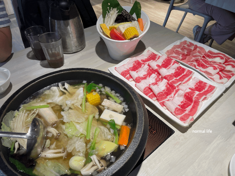 이번 타이베이 여행은 5세 아이와 함께하는 여행이기에 핫팟에 계속 끓이면서 맛봐야 하는 훠궈가 위험하지 않을까 고민하다가 남편과 내가 너무도 좋아하는 훠궈를 대만까지 와서 맛보지 못하면 너무 아쉬울 것 같았다. 아이와 동행한 가족들은 대부분 1인용 핫팟이 아닌 여럿이 큰 핫팟을 함께 맛볼 수 있는 좌석으로 안내해 주는 듯했다. 마라맛을 좋아하는 남편이지만 아이와 함께 먹는 음식이다 보니 맵지 않은 기본 육수의 돌솥훠궈를 선택하여 함께 맛보았다. 우리집 꼬마친구는 소고기, 버섯, 당면, 쌀밥, 레몬동과차까지 스얼궈에서 점심을 너무도 잘 먹어주었다. 태풍 끄라톤이 상륙했던 날이라 따뜻한 국물이 너무도 찰떡이었다.