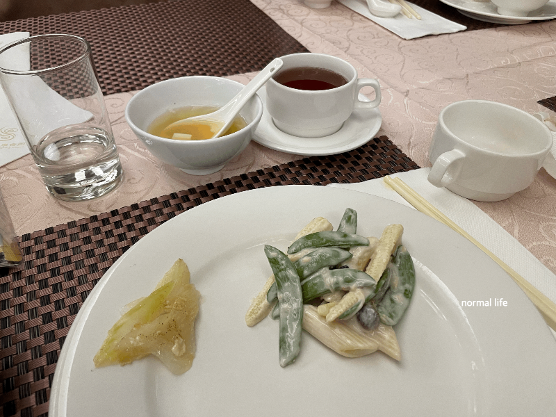 단호박샐러드, 연근샐러드, 샐러리볶음, 미역줄기무침, 청경재 볶음, 계란말이, 삶은 계란, 샐러드 등 신선한 야채와 따뜻한 요리가 준비되어 있었다. 요리가 떨어지면 바로바로 준비되고 다른 요리로 준비해 주셨다.