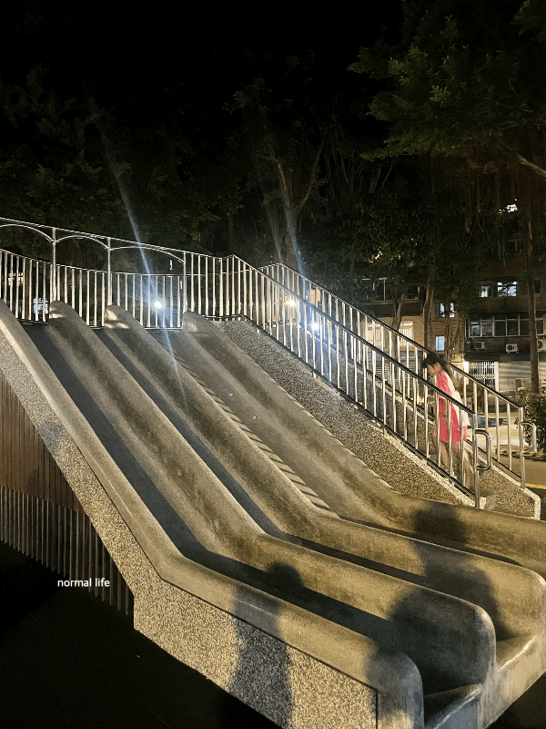 저녁 9시가 넘었는데도 융캉공원 놀이터에는 미끄럼틀과 철봉, 놀이기구에서 노는 대만 아이들과 부모들이 꽤 있었다. 어느 나라건 아이들에겐 놀이터가 제일인 듯 싶다. 많은 놀이터를 다녀봤지만 대리석 미끄럼틀은 너무 생소하였다. 위험할 것 같았지만 대만 아이들이 너무도 잘 노는 걸 보더니 놀이터 러버 딸아이도 함께 대리석 미끄럼틀을 탔다.