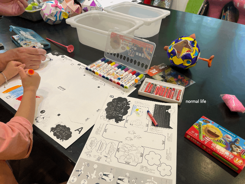 당대예술관 티켓을 소지하면 무료로 체험이 가능하고 1시간 정도 소요된다고 했다. 넓은 어린이 책상에는 크레파스, 사인펜, 풀, 본드, 가위, 종이 등 다양한 대만 미술도구들이 있어 아이의 얼굴에는 호기심이 가득하였다.
