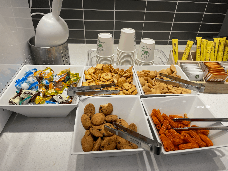 퐁당에는 샤브샤브를 즐긴 후 식후 즐길 수 있는 커피와 차, 스낵, 아이스크림이 준비되어 있었다. 딸아이는 초코아이스크림을 부모님과 우리 부부는 커피를 후식으로 즐겼다.