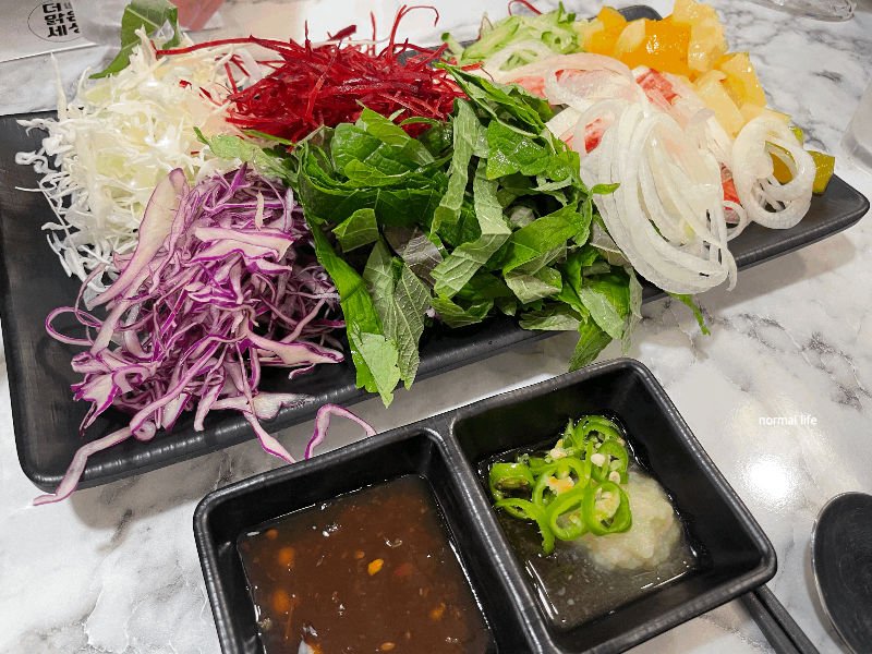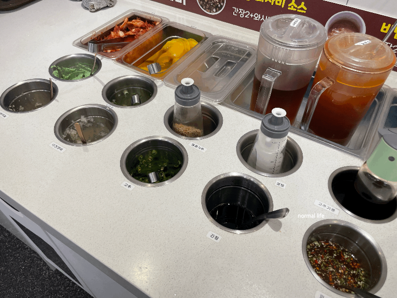 오이, 비트, 양파, 콘샐러드, 후르츠 칵테일, 당근, 양배추, 깻잎, 맛살, 라이스페이퍼 등 월남쌈 재료가 리필바에 준비되어 있다. 직원들에 계속 리필바를 깔끔하게 정리하는 모습이었고 모든 재료들이 신선하고 깔끔하게 정돈되어 있어 기분 좋게 식사할 수 있었다.