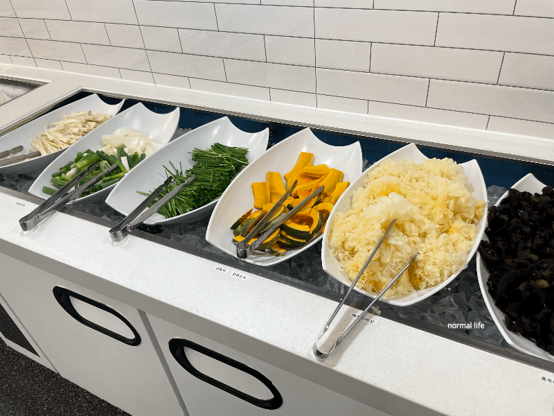 모든 샤브 야채 재료들이 신선하고 깔끔하게 준비되어 있었다. 목이버섯, 단호박, 부추, 양파, 파, 팽이버섯, 숙주, 배추, 느타리버섯, 송이버섯, 청경채, 미나리 등 다양하게 맛볼 수 있었고 내가 가장 좋아하는 신선한 미나리를 소고기와 함께 마음껏 맛볼 수 있었다.