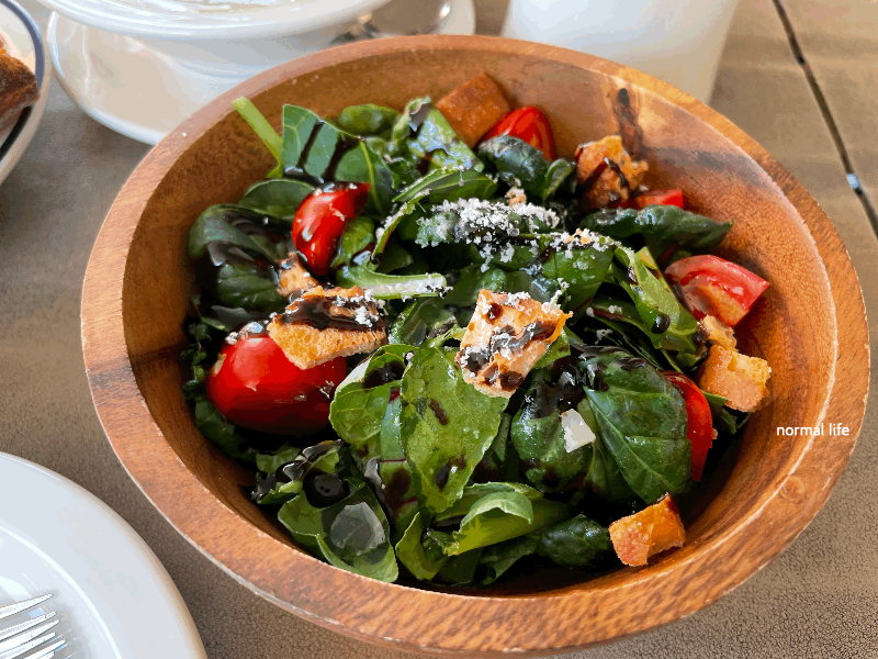 신선한 야채와 방울토마토에 발사믹이 올려져 상큼함이 가득한 미니샐러드이다.