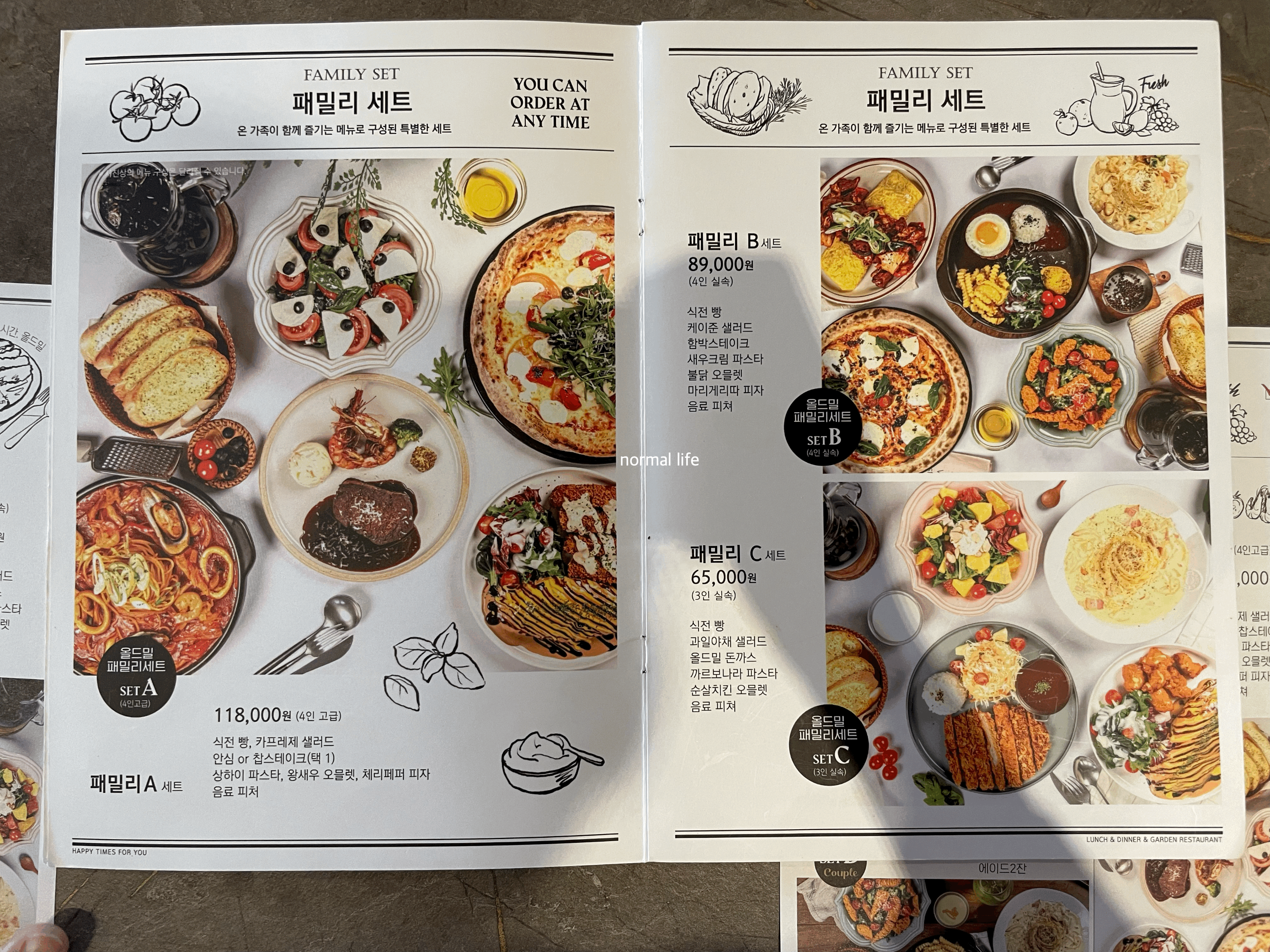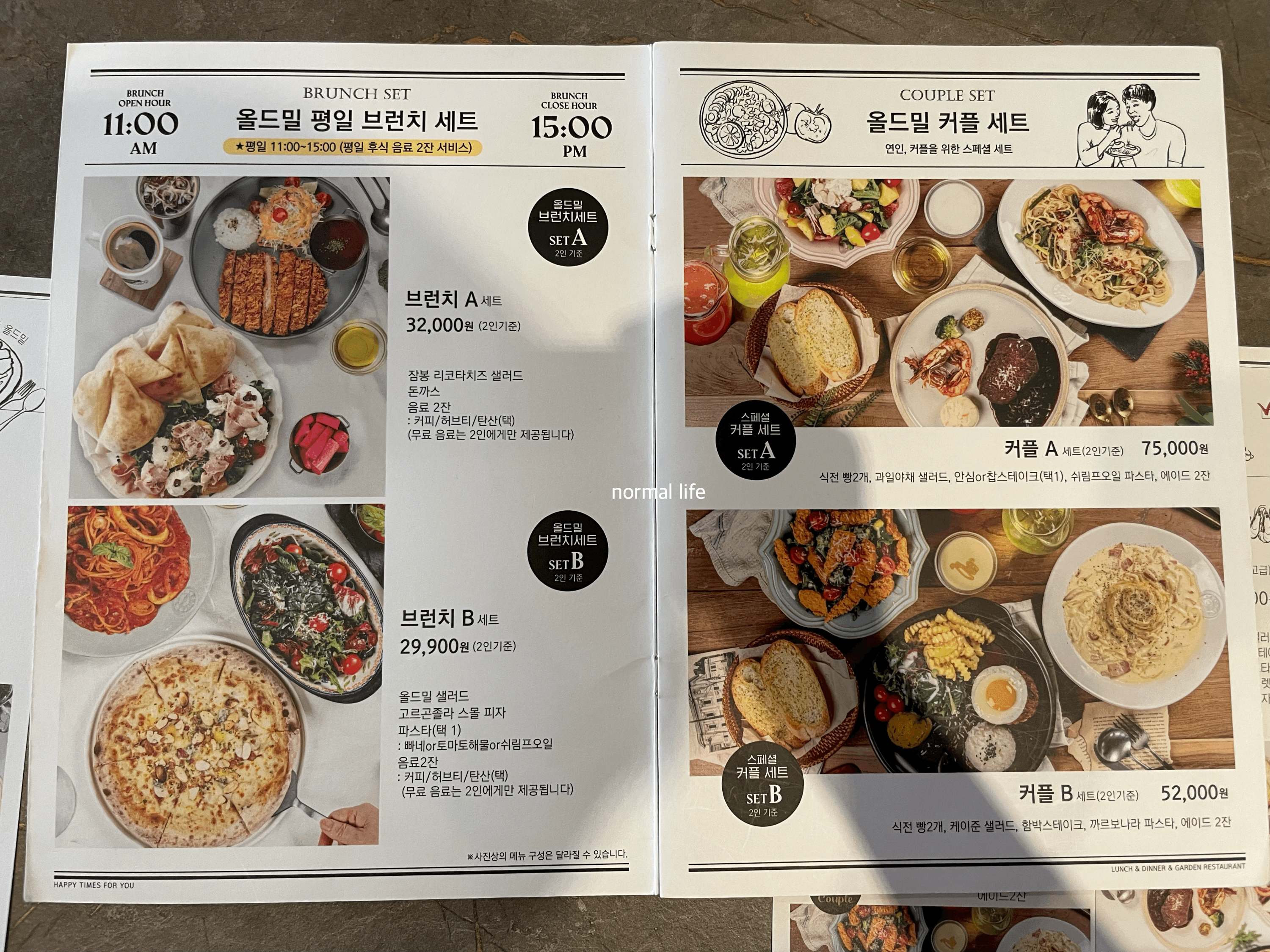 평일 오전 11시부터 오후 3시까지 이용 가능한 #올드밀 평일브런치세트, 연인 커플을 위한 #올드밀 커플세트, 온 가족이 즐길 수 있는 #패밀리 세트가 있어 인원수와 구성원에 따라 세트 메뉴를 선택을 할 수 있다.
