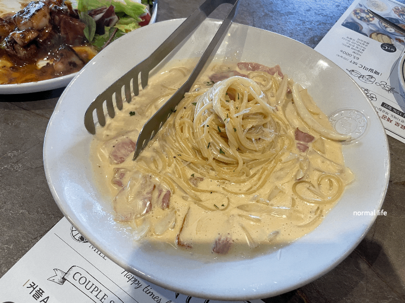 부드러운 치즈와 베이컨, 양파가 들어간 녹진한 맛의 까르보나라이다. 부드럽고 진한 크림맛이 좋았지만 양이 적어 조금 아쉬웠다.