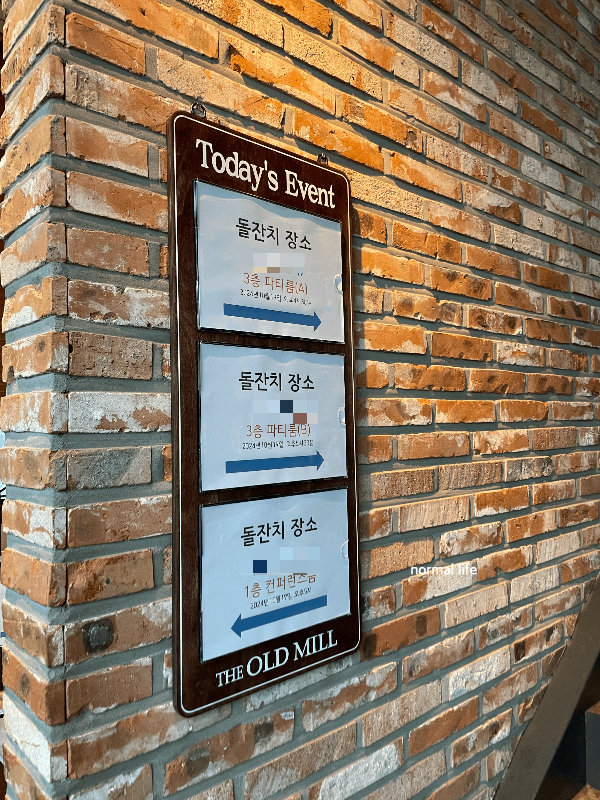 올드밀은 3층 건물로 1층과 3층은 공간임대로 스몰웨딩과 돌잔치, 파티공간으로 이용되고 있다고 한다. 특히 소규모 돌잔치로 인기가 많아 사전예약은 필수라고한다.