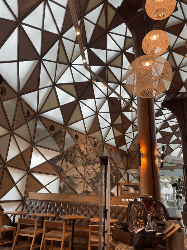 직선형태가 아닌 곡선 형태의 공간을 구현해 내 기존의 스타벅스와는 차별된 공간으로 보그에서 뽑은 세계에서 가장 아름다운 스타벅스 7인에 선정되었나 보다.