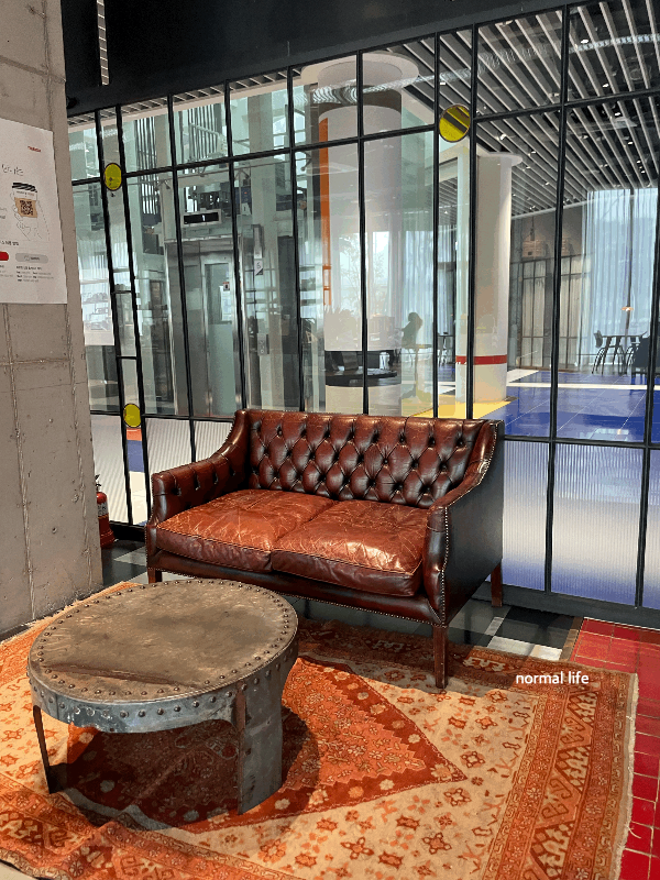 테라로사 세종점 입구에 있는 가죽소파와 철제 테이블 그리고 페르시안풍 러그까지 이국적인 감성으로 꾸며진 공간이다. 다른 테이블과 떨어진 단독공간으로 푹신한 소파에서 조용하게 즐길 수 있는 공간이다.