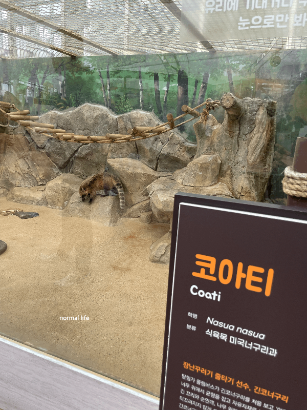 긴 꼬리와 긴 코를 가지고 있어 긴코너구리로 불리는 코아티를 만날 수 있다.