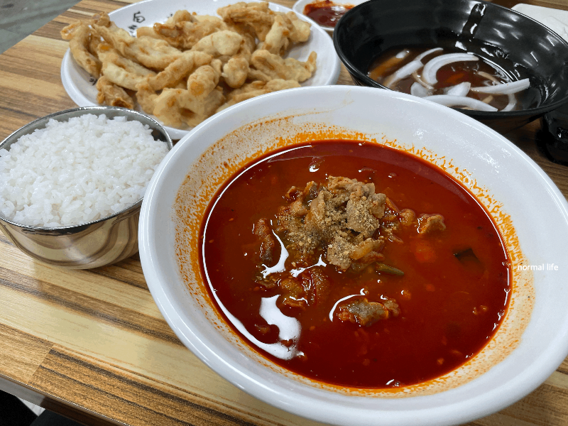 공주를 방문하였다면 꼭 맛봐야 하는 고기짬뽕과 밥을 함께 즐길 수 있는 고기짬뽕밥을 주문하였다. 일반 짬뽕에는 돼지고기와 해산물이 들어가는데 고기짬뽕에는 우삼겹이 더 추가되어 호화로운 짬뽕을 즐길 수 있었다. 공주의 또 다른 짬뽕 맛집 동해원의 짬뽕밥을 좋아하는데 동해원보다 조미료맛이 덜 강해 좋았다.