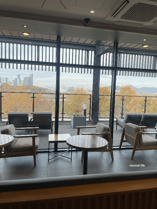 갑자기 추워진 날씨로 야외에서 커피타임을 즐길 수 있는 테라스는 이용이 불가능했다. 2층 3층 4층 모두 테라스 좌석이 있어 날씨 좋은 봄이나 가을에 금강과 수변공원을 즐길 수 있을 때 다시 한번 방문해보고 싶다.