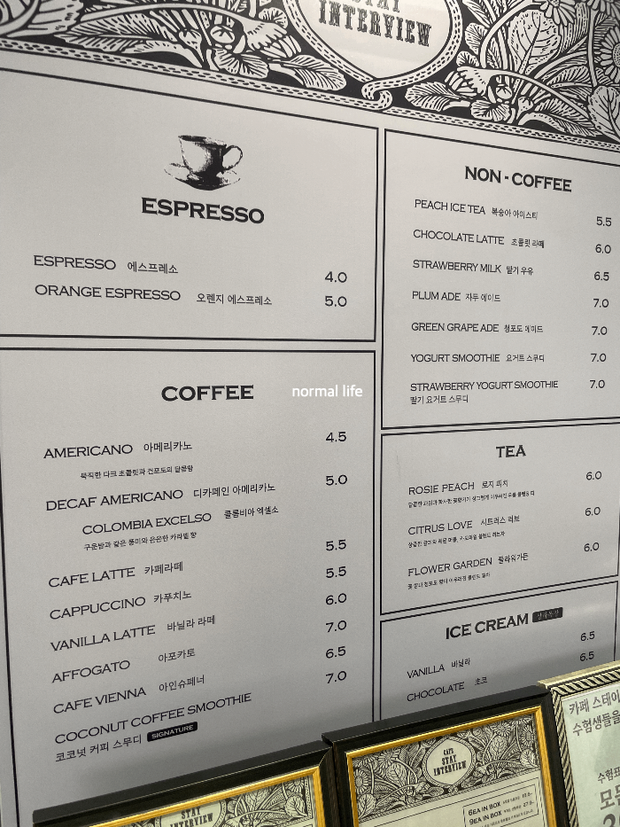 3. 카페스테이인터뷰 대전신세계점 메뉴와 가격