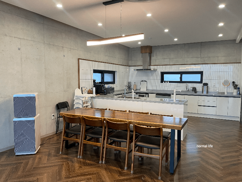 8인용 식탁과 여분의자, 그리고 넉넉한 아기 의자까지 대가족 와도 불편함이 없는 식사시간일 것이다. 한적한 마을에 위치한 스테이 인 웜아이스 근처에는 마트나 편의점이 없고 배달음식이 쉽지 않아 식재료와 먹거리를 모두 준비하여 체크인하였다.