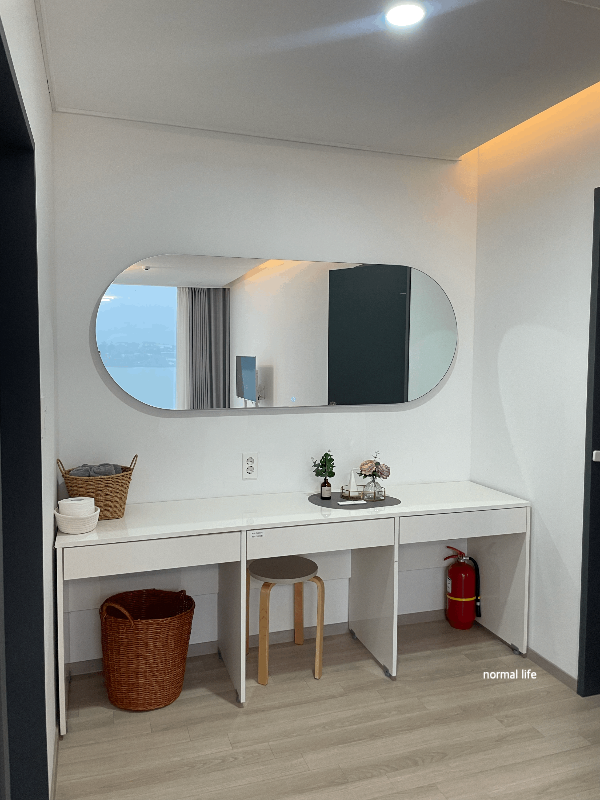 침실 1보다 널찍한 파우더 공간이 마련되어 있어 다음 날 아침 친구와 오순도순 이야기도 하며 화장과 머리를 만지며 체크아웃을 준비했다.