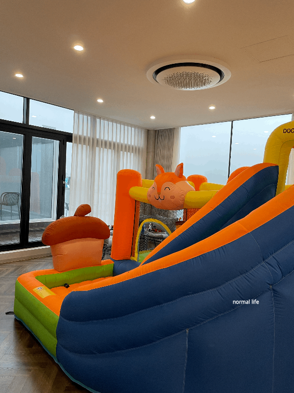5세 꼬마친구들이 가장 좋아했던 에어바운스이다. 에어바운스를 이용 시에는 사전에 사장님께 말씀드리면 준비해주신다고 한다. 우리는 예약 시 약간의 착오가 있어 에어바운스가 준비되어있지 않아 당황했는데 사장님이 직접 오셔서 바로 설치해 주셨다. 스테이 인 웜아이스 1층 공간이 워낙 넓다 보니 에어바운스 소리가 어마어마한데 소음이 분산되어 그렇게 시끄럽지 않아 만족스러웠다.