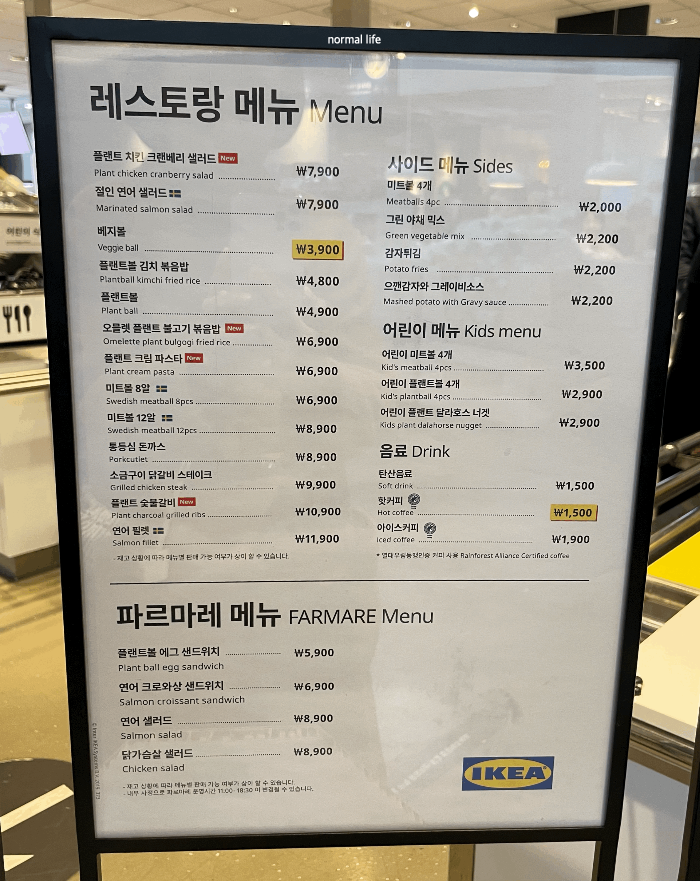 2. 이케아 레스토랑 기흥점 메뉴와 가격