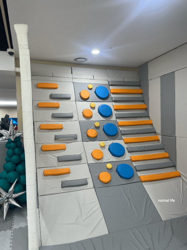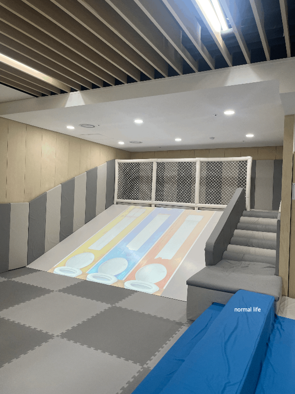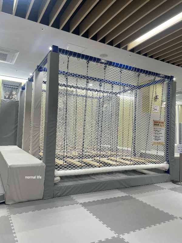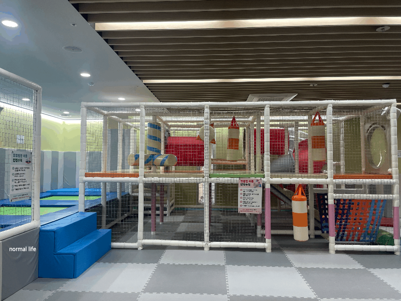 만 4세부터 10세까지 이용가능한 트램펄린과 만 3세부터 7세까지 이용가능한 정글짐이다. 트램펄린은 4세-5세 , 6세-7세, 8세-10세 나이별로 이용할 수 있도록 3개의 트램펄린으로 나뉘어 안전하게 이용할 수 있었다.