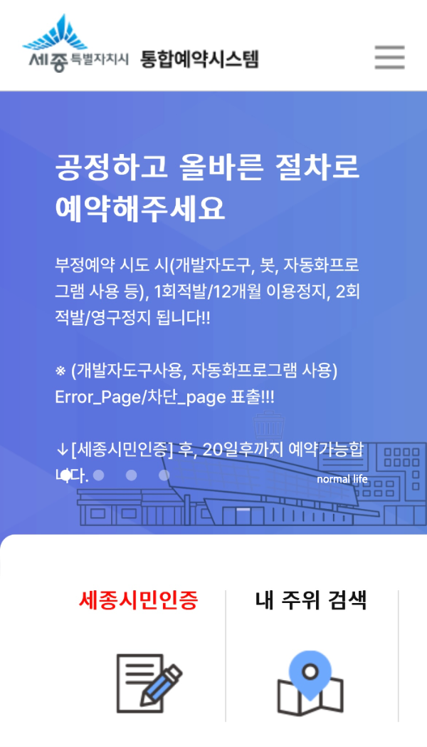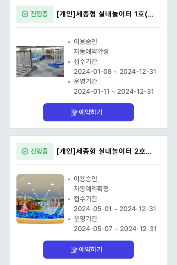 세종시민을 인증하고 원하는 날짜와 시간을 선택한 후 예약이 가능하다. 세종형 실내놀이터 1호 입장시에는 주민등록등본을 확인 후 이용이 가능하나 정부 24에서 발급받거나 사전에 미리 준비를 해야 한다.