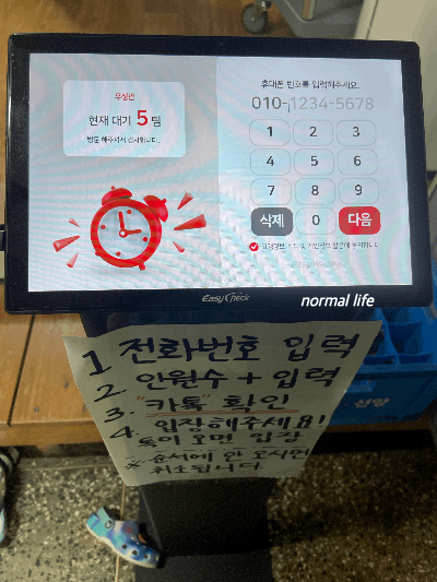 11시에 오픈이고 3시 반까지 영업시간이나 그날의 재료가 소진되면 영업을 종료한다고 한다. 비가 많이 오는 토요일이었는데도 11시 40분쯤 도착했는데 앞에 대기 5팀이었다. 오래된 외관과는 다르게 우성관의 시스템은 최첨단이었고 꽤나 체계적이었다. 도착하자마자 웨이팅 태블릿에 대기를 걸고 대기실에서 카톡으로 우리 번호가 다가오길 기다렸다. 원래 대기실도 식사하는 공간이었는데, 많은 손님보다는 퀄리티 좋은 음식을 제공하고 손님들의 쾌적한 대기를 위해 대기실로 바꾸신듯하다.