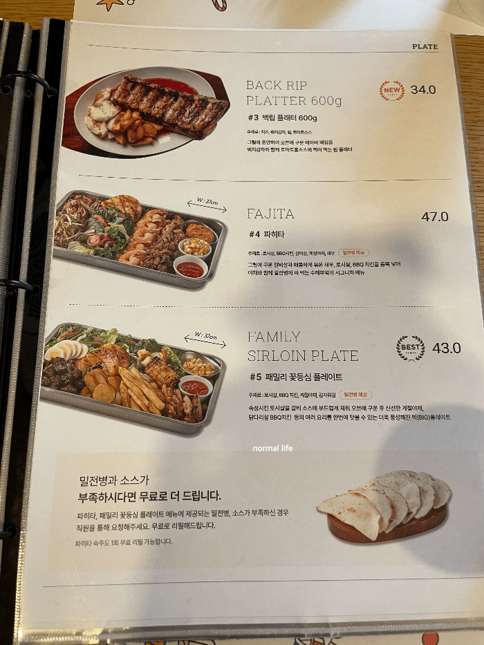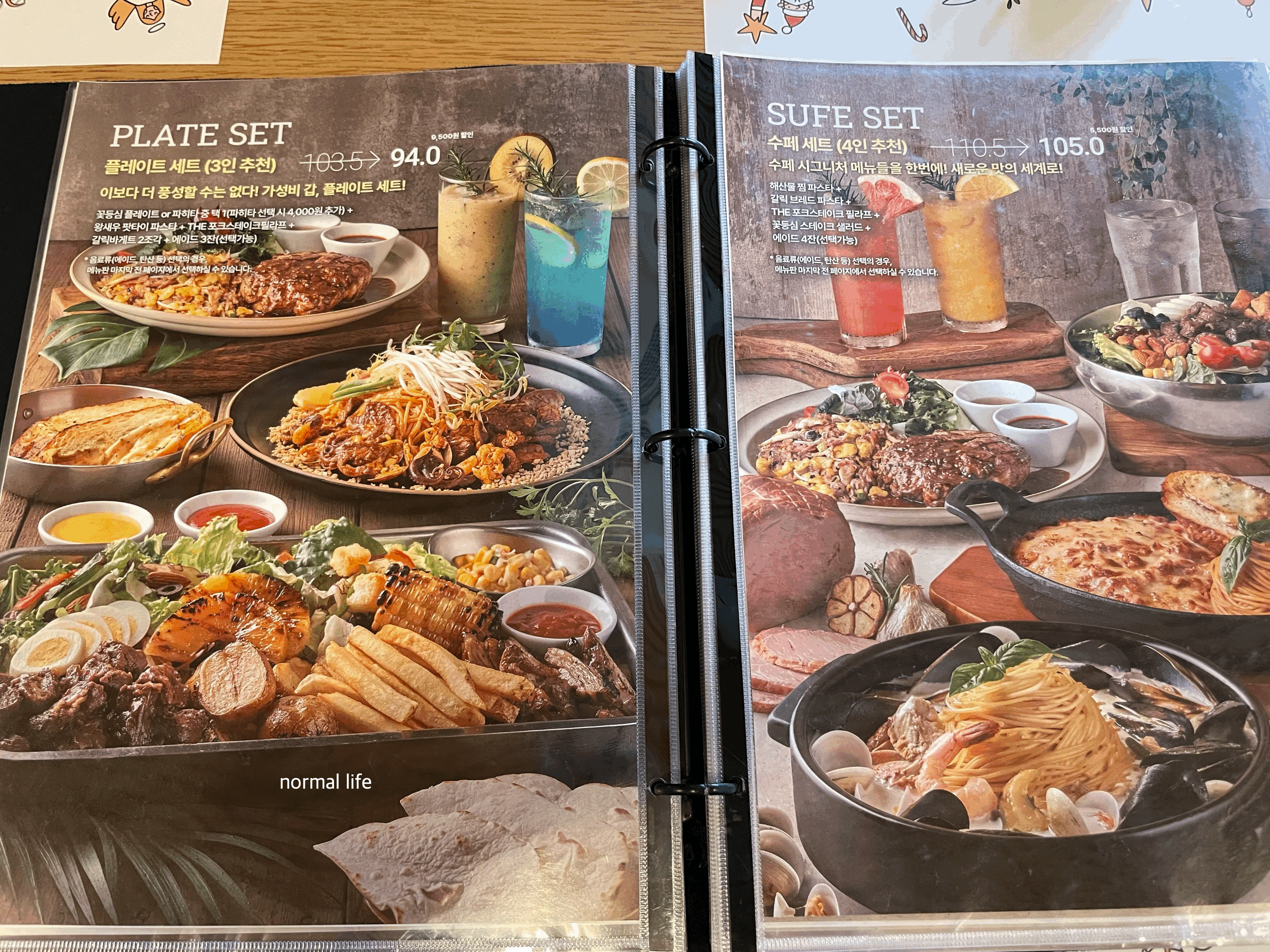 가족단위나 커플, 모임을 위한 세트메뉴가 다양했다. #수페월컴세트(2인) 49,000원 #커플스테이크세트(2인) 67,000원 #플레이트세트(3인) 94,000원 #수페세트(4인) 105,000원 #수페세트(5인) 120,000원으로 인원에 맞춰서 선택할 수 있다.