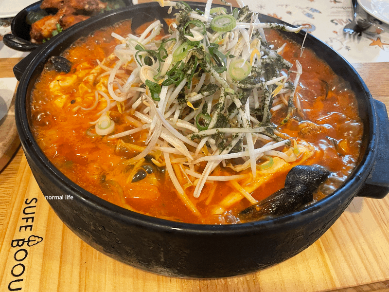 성인 6명과 어린이 2명 예약 방문한 우리는 수페부엌의 온 가족이 다양한 메뉴를 즐길 수 있는 수페세트 5인을 주문하고 단품메뉴를 추가주문하였다. 수페세트 5인은 꽃등심플레이트, 숯불불고기해산물볶음밥, 해산물찜파스타, 고르곤졸라피자, 윙&봉 5조각, 갈릭바게트 2조각, 에이드 2잔, 탄산 3잔을 맛볼 수 있다.
