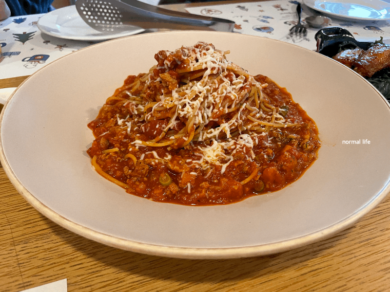 라구파스타를 좋아하는 딸아이를 위해 주문한 메뉴이다. 잘게 다진 돼지고기가 가득 들어간 토마토소스에 치즈를 뿌려 먹음직스러운 라구파스타이다. 기존의 파스타면보다 얇아 진한 라구소스가 잘 베어 들었다.
