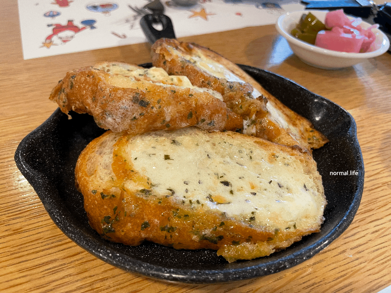 애피타이저로 제공된 바삭하면서 마늘의 진한 풍미 가득한 갈릭브레드이다.