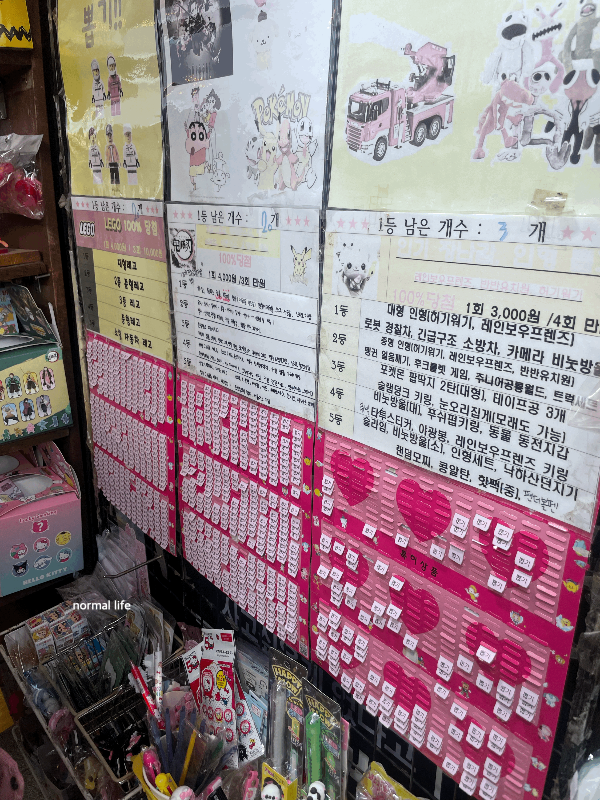 추억의 뽑기 게임은 100% 당첨이고 1회 4,000원 3회 10,000원이다. 우리는 딸아이가 좋아하는 산리오 뽑기 3회를 해보았는데 아쉽게도 5등 당첨이었다. 다행히 꽝이 없어 상품으로 폼폼푸린, 쿠로미, 키티 미니 피규어를 선택하였다.