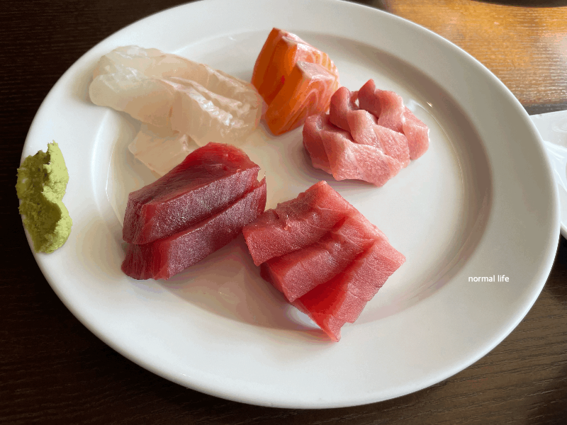 신선한 광어, 생연어, 참치 사시미를 셰프가 직접 손질하면서 사시미 뜬다. 밥알은 적고 큼지막한 사시미가 올라간 스시도 즉석에서 맛볼 수 있다.