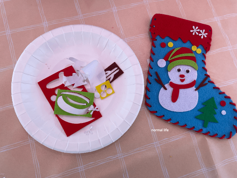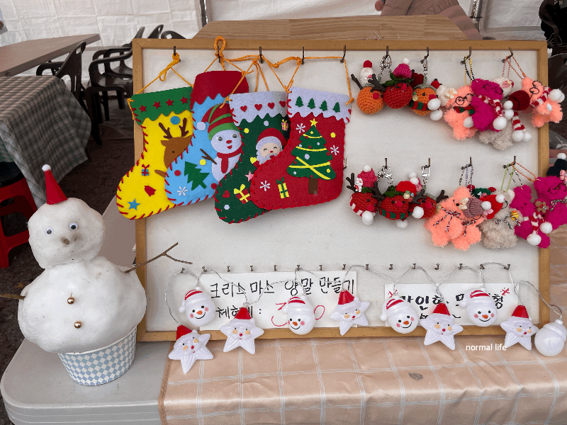 5세 딸아이와 어렵지 않게 체험할 수 있는 크리스마스 양말 만들기 유료체험을 해보았다. 3,000원으로 현금, 계좌이체가 가능하며 노란색, 하늘색, 초록색, 빨간색 중 선택할 수 있으며 선생님의 친절한 설명과 천천히 즐겁게 체험할 수 있었고 완성된 산타 양말에 사탕까지 넣어주셨다.