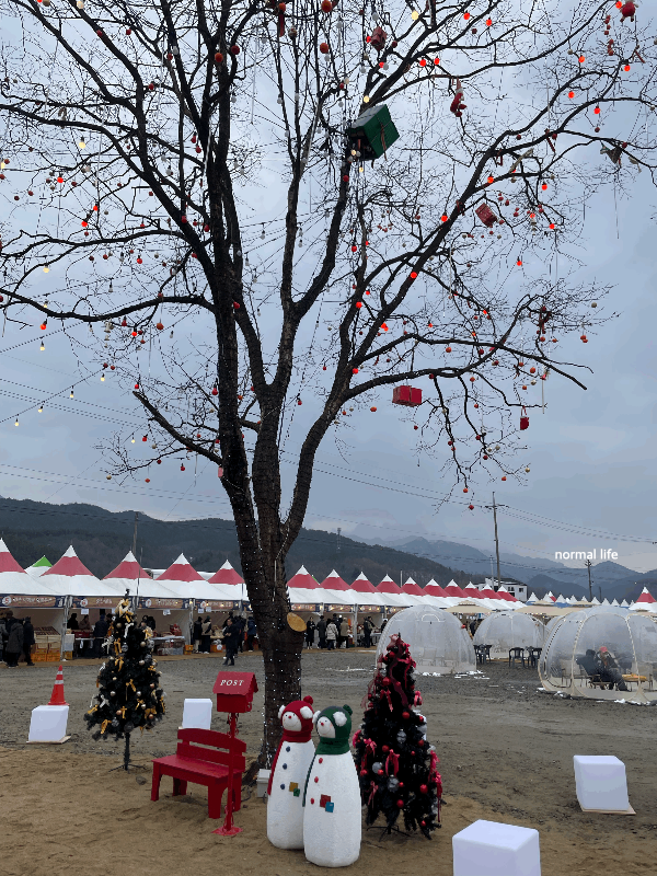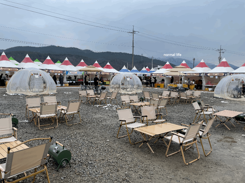 곶감축제의 계절 12월은 낮은 온도와 매서운 바람덕에 춥다 보니 투명한 돔하우스에서 추위를 녹일 수 있도록 설치해 두었다. 이용시간은 30분으로 제한되며 다음 이용자를 위해 정리정돈은 필수이다.