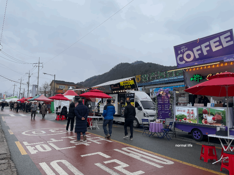 2024년 양촌곶감축제 장소인 양촌 면소제지 일대에는 푸드트럭, 먹거리, 농산물, 생활용품 등 다양한 판매부스들이 있었다.