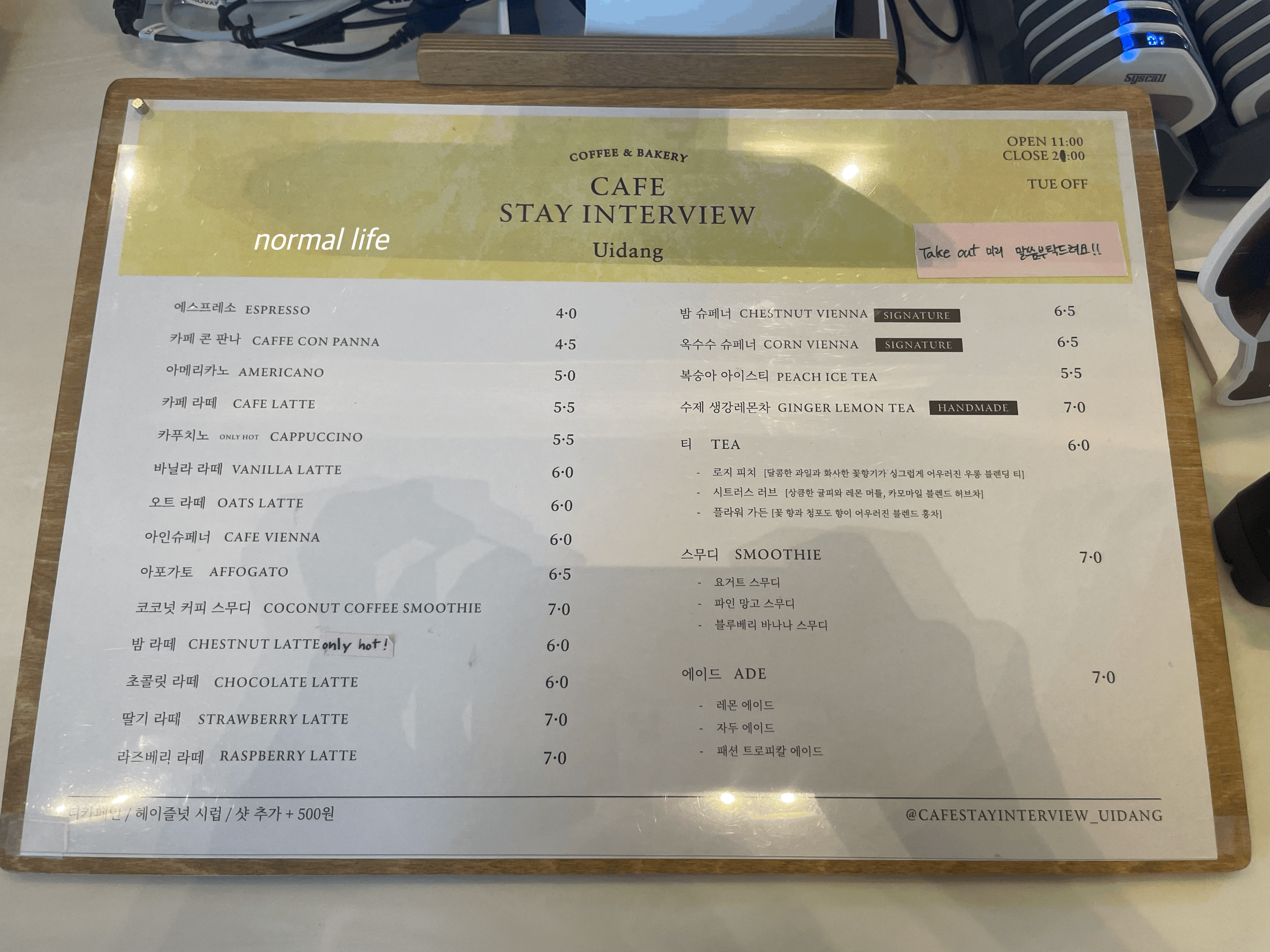 3. 카페 스테이인터뷰 의당 메뉴와 가격