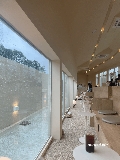 비 오는 날 방문해 이곳의 건축물 색감을 사진으로 담아내지 못해 아쉬웠다. 따뜻한 버터크림색의 독특한 외관과 초록 논밭이 잘 어우러져 독특하고 예쁜 건축물의 색감이 더 독보였다. 하얀 조약돌이 깔린 얕은 연못과 작은 분수는 힐링 그 자체였다. 비도 오고 무더운 여름이라 실내에 앉았지만 조금 선선한 날씨에는 야외 테라스에 앉아 차를 마셔도 좋을 것 같다.
