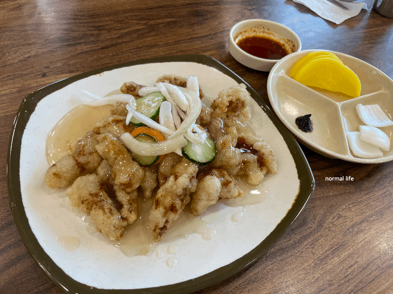 얇은 찹쌀 튀김옷을 입혀 갓 튀겨낸 동해원의 탕수육은 바삭하면서 육즙이 가득해 짬뽕과 함께 동해원에서 꼭 맛봐야할 메뉴이다. 탕수육 소스맛이 담백해 아이와 함께 맛보기에도 좋았고 동해원의 짬뽕과도 궁합이 좋았다.