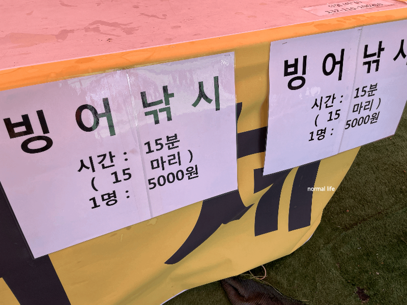 아이들이 좋아하는 빙어낚시도 체험할 수 있다. 15분 5,000원으로 현금과 계좌이체가 가능하다. 빙어낚시에 입장하면 작은 컵이 제공되는데 그곳에 꼭 15마리만 잡으라고 사장님이 설명해 주셨다.