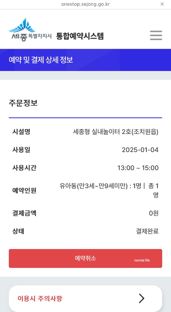 세종형 실내놀이터 2호점은 세종시 통합예약시스템에서 세종시민을 인증하고 원하는 요일과 시간을 선택한 후 예약을 통해 이용이 가능하다. 1 회차당 16명 정원범위 내에서 현장접수도 가능하다고 하나 사전 예약 후 방문하는 것을 추천한다. 이용 시작시간 30분 경과 후 미방문시 자동취소된다.