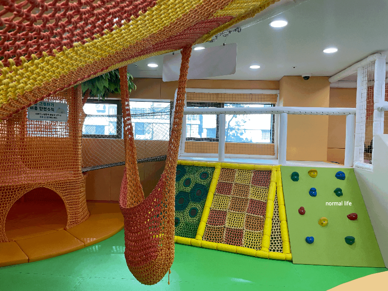 어린이 제품 안전인증을 받은 친환경 소재의 그물 놀이기구가 설치되어 있는 칼라트리 공간이다. 그네는 1명씩 이용이 가능하며 어린 유아들은 혼자 이용이 어려우므로 보호자와 함께 이용해야 한다.